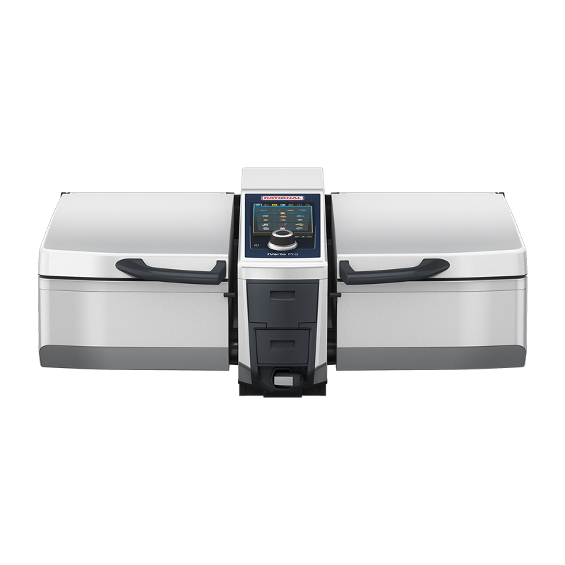 De iVario Pro 2-S van RATIONAL is een intelligent, multifunctioneel kooksysteem met twee afzonderlijke kookpannen van 2 × 25 liter. Het toestel combineert koken, bakken, braden, frituren en sous-vide in één compacte unit en past automatisch temperatuur en kooktijd aan voor perfecte resultaten.